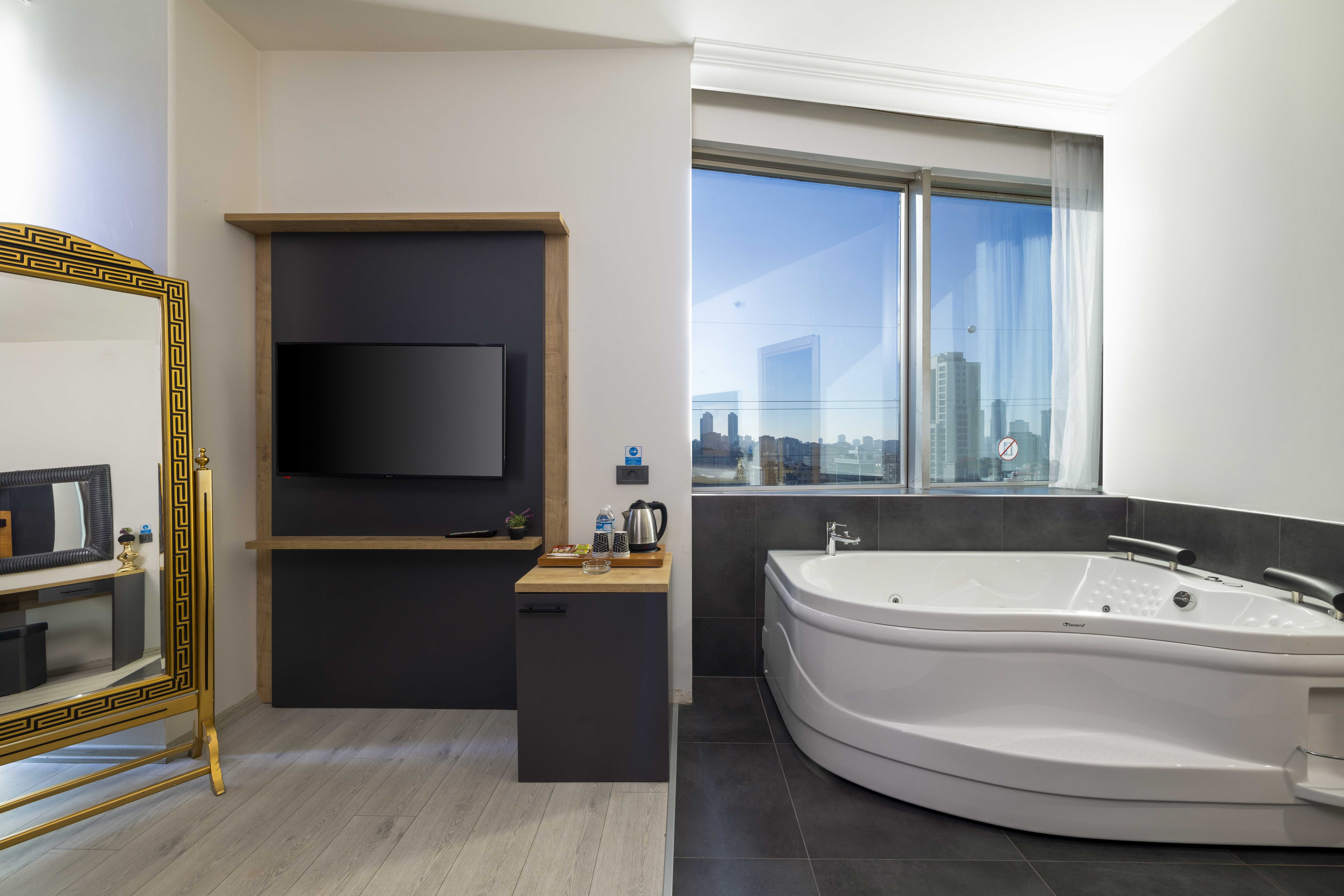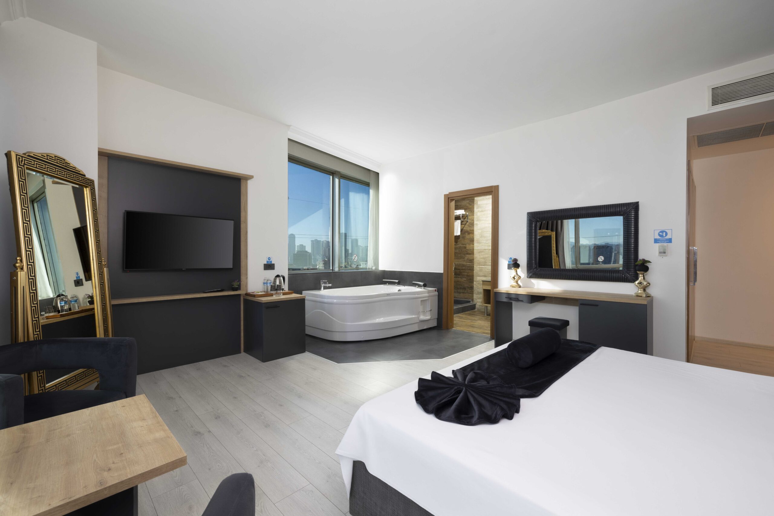 Modern lüksün ve konforun buluşma noktası! Jakuzili Deluxe Room, hem dinlenmek hem de kendinizi şımartmak isteyenler için özel olarak tasarlandı. Şehrin temposundan uzaklaşıp, jakuzi keyfiyle rahatlayabileceğiniz bu oda, huzur dolu bir konaklama deneyimi sunuyor.